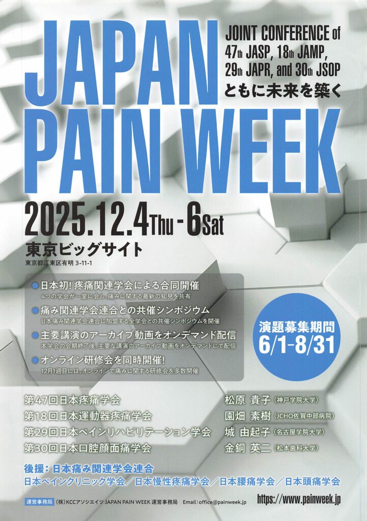 12月4日(木)〜6日(土)に東京ビッグサイトで開催される疼痛関連学会合同開催の「JAPAN PAIN WEEK」にハプキタス株式会社として出展いたします!第47回日本疼痛学会(松原貴子大会長 神戸学院大学)、第18回日本運動器疼痛学会(園畑素樹大会長 JCHO佐賀中部病院)、第29回ペインリハビリテーション学会(城由紀子大会長 名古屋学院大学)、第30回口腔顔面痛学会(金銅英二大会長 松本歯科大学)の合同開催という日本初の大会です。「ペインコンパス」は痛覚変調性疼痛の早期評価への診断補助機器として、昨年の福岡県革新的医療機器研究開発のご支援で試作器を開発いたしました。本年は「ヘルスケア産業基盤高度化推進事業」の一環として、経済産業省と九州ヘルスケア産業推進協議会(HAMIQ)が連携し、事業者を支援する「九州ヘルスケアスタートアップラボ(KSLab)」に採択されました。健康経営支援から痛みの臨床での評価を射程にいれた機器開発と社会実装に取り組んで参ります。展示会場へのご来場をお待ちしております。